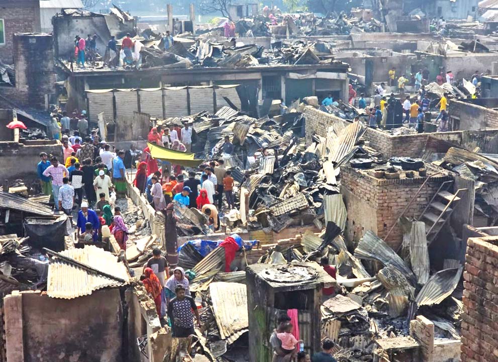 এদিকে, ভয়াবহ আগুনে পুড়ে ছাই হয়ে গেছে রাজধানীর বনানীর কড়াইল বস্তি। আগুনে ঘরপোড়া মানুষের আহাজারিতে ভারী হয়ে উঠেছে আশপাশের পরিবেশ। সব হারিয়ে নিঃস্ব বস্তিবাসী। কেউ আশ্রয় নিয়েছেন খোলা মাঠে, কেউ বা ধ্বংসস্তুপের সামনে নির্বাক চেয়ে আছেন। কেউ আবার ধ্বংসস্তূপে খুঁজছেন বেঁচে থাকার শেষ আশা। খাবার পানিটুকুর জন্যেও তাদের চেয়ে থাকতে হচ্ছে অন্যের দিকে। ঘটনাস্থলে ক্ষতিগ্রস্তদের খাদ্য-পানিসহ প্রয়োজীন সামগ্রী দিচ্ছেন অনেকে।